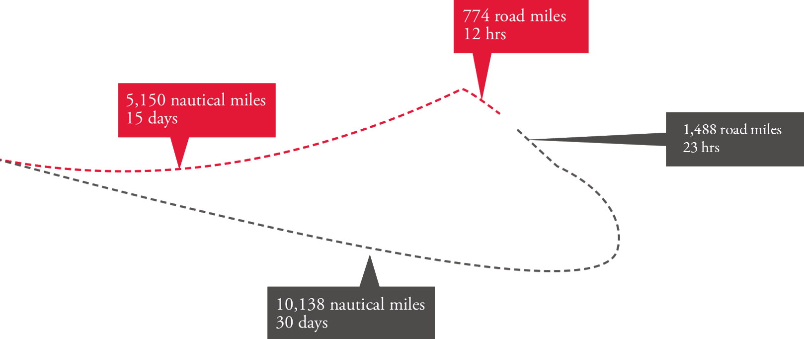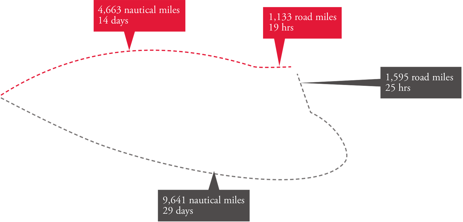 Reduced CO2 emissions along key routes, plus fewer road and rail miles to inland destinations.